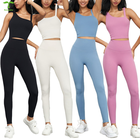 ชุดเลกกิ้งเล่นโยคะสำหรับผู้หญิง2ชิ้นน้ำหนักเบาออกแบบได้ตามต้องการชุดสปอร์ตบราแบบมีสายรัด