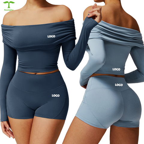 ชุดเล่นโยคะของผู้หญิงกางเกงวิ่งขาสั้นระบายอากาศได้ดีชุดเล่นกีฬาสีพื้นสีทึบงานตามสั่ง